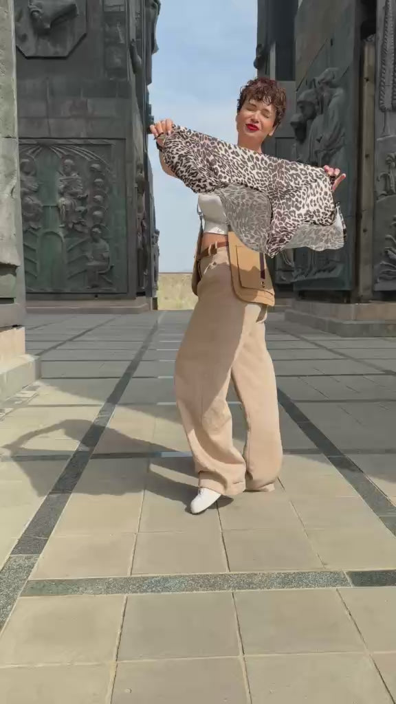 Brown vest-bag that replaces a handbag, has pockets, adjustable in size: S, M, L
